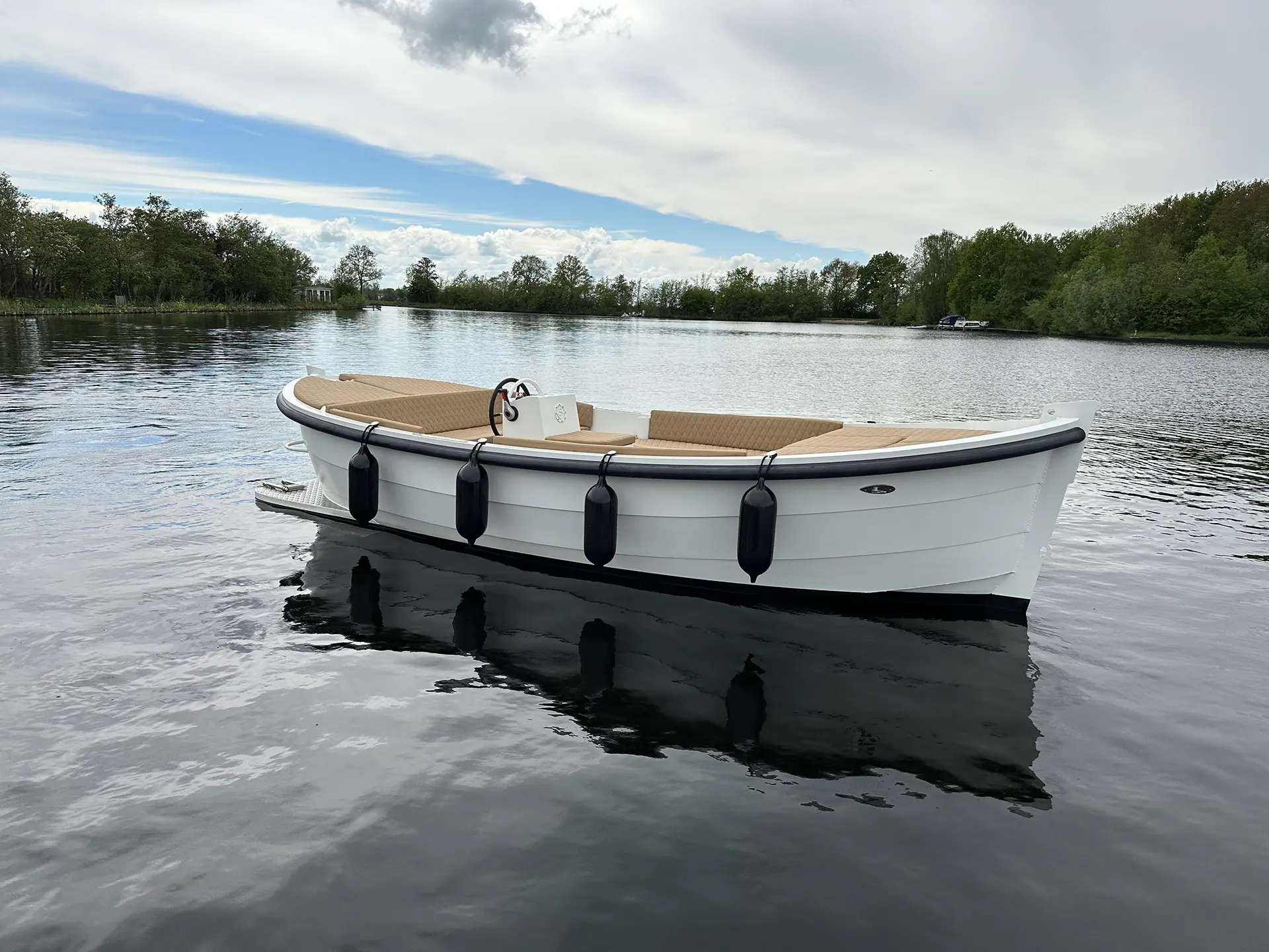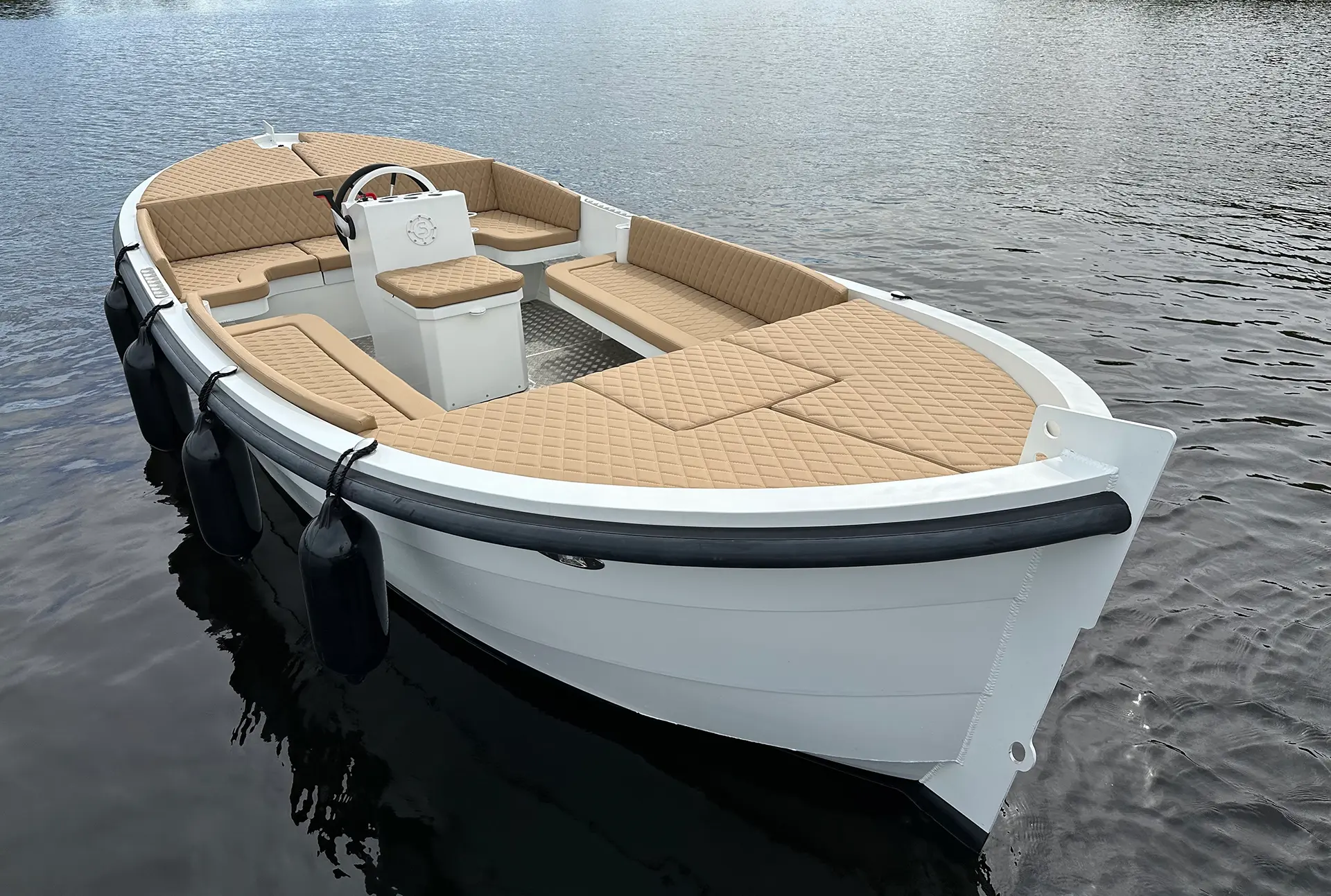 Met zijn 670 cm lengte en 250 cm breedte biedt deze boot ruimte voor 8 passagiers (zelf varen) of 12 passagiers (met schipper).